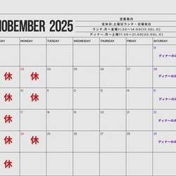ディナー 17:30 〜 21:00 L.O. 20:00 年末は12/28(土)まで、年始は1/6(月)からの営業になります。 |